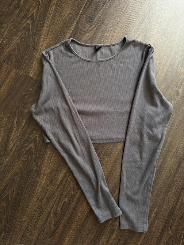 Без дефектів, в рубчик, короткий топ з довгим рукавом
