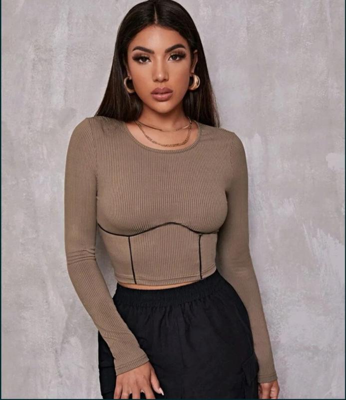 Кроп-топ шоколадный укороченный с имитацией корсета