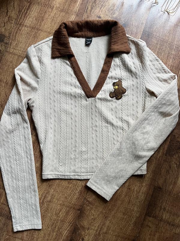 Колір: молочний із коричневим коміром та вставкою ▫️ Матеріал: трикотаж із візерунком «косичка» ▫️ Укорочена ▫️ Стан: відмінний, без дефектів ▫️ Від Shein ▫️ Розмір: S