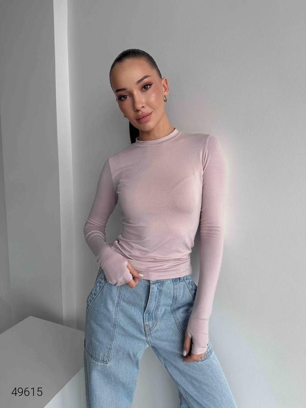 Нежно розовый базовый женственный лонгслив