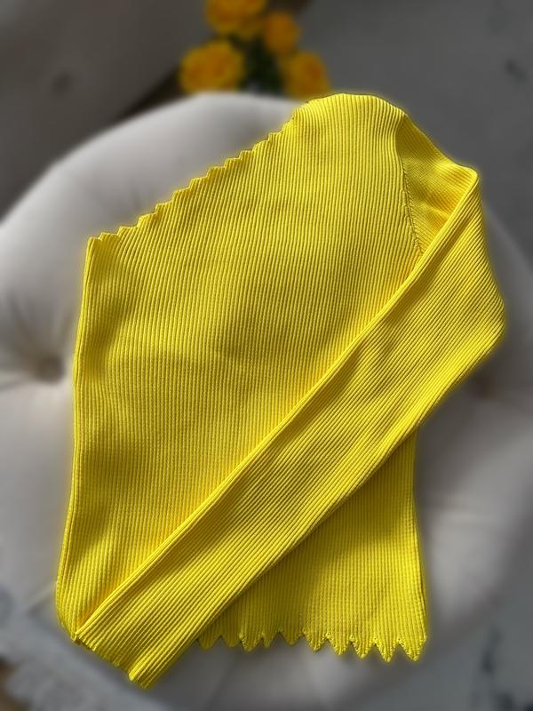 Желтая кофта с фигурным краем Яркая женская кофта, которая добавит образу свежести и настроения. Стильный фигурный край делает ее особенной и привлекательной. Отлично сочетается с джинсами, шортами или юбками. Детали: • Цвет: насыщенный желтый • Длинный рукав • Фигурный (волнистый) край • Материал: эластичный трикотаж, приятный на ощупь • Размер: S Стан: нова .
