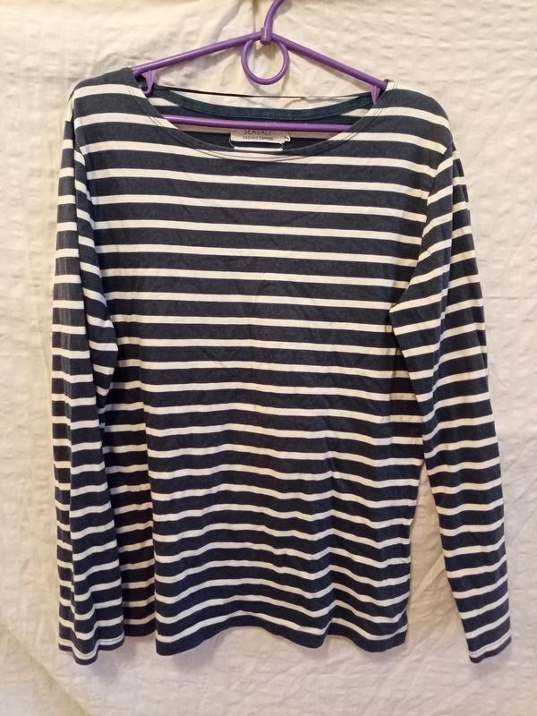 Тип одежды: лонгслив Бренд: Seasalt Cornwall Размер производителя: 10 Склад: 100 бавовна, тканий смужками. Ткань на ощупь мягкая, тоненькая, средней плотности, умеренно эластичная. Состояние: идеальный Есть едва заметный запах Уход: стирка Замеры изделия: 94 в груди, 98 по низу Обмеры, рекомендуемые производителем: 88-71-98 Длина изделия по спинке: 61 см Длина рукава с плечом: 69 см Пожалуйста, внимательно читайте описание и обмеры. Вещь является потребляемой, настоятельно рекомендую постирать или почистить перед использованием. Обмену и возврата нет. Все дополнительные вопросыридж задавать в сообщениях SKU: 9142025-016