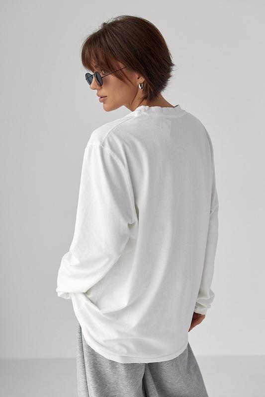 Однотонний базовий лонг oversize — незамінна річ для створення сучасних повсякденних образів. Трикотажна тканина дарує комфорт і приємні тактильні відчуття, а вільний прямий крій забезпечує легкість рухів та підкреслює невимушений стиль. Кругла горловина з легким ефектом потертостей додає виробу оригінального акценту й створює злегка вінтажний настрій. Довгі рукави й прямий низ формують лаконічний силует, що пасує до будь-якої фігури