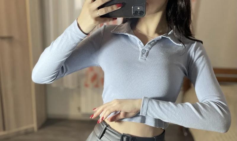 Блакитний лонг поло у розмірі XS.Довжина 40 см,ширина 35 см,рукав 59 см