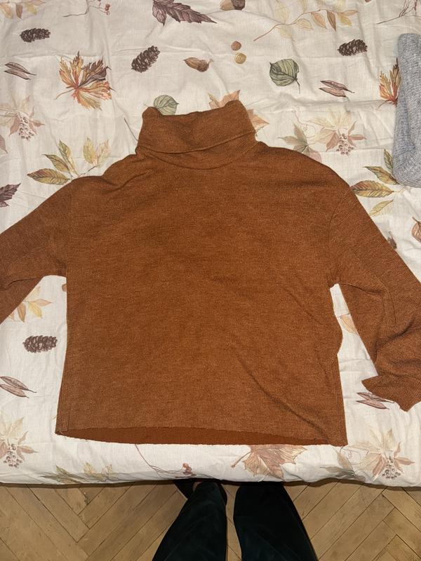 Кофта в рубчик , рижого осіннього кольору Добрий стан, без дефектів Довжина: 57 см Ог: 110 см От: 100 см Довжина рукава: 50 см Обʼєм горловини: 46 см Висота розгорнутої горловини: 17 см