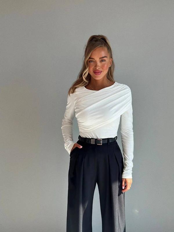 🖤ЗНОВУ В НАЯВНОСТІ 🖤 Лонгслів ▪️мод 431 ▪️тканина: мікромасло ▪️колір : чорний , білий , беж ▪️SM ; ML Розміри SM | ML Груди : 83 -89 см | 89-98см Талія: 60-66 | 67-75 см 🔥спідниця шорти на фото - мод 336 ; Брюки -мод 190;