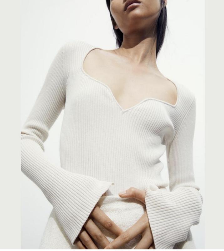 🌿молочный Лонг рубчик H&M с красивым декольте Размер:S Замеры:ПОГ 36 см, длина 58 см, рукав 66 см