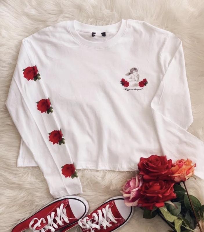Лонгслів з принтом ангела, та трояндами на рукаві Розмір XS
