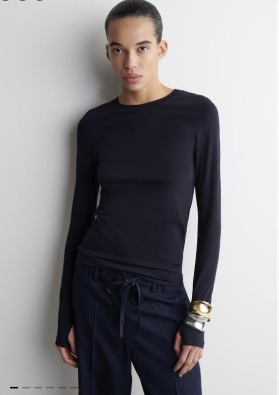 Ідеальний базовий лонгслів з сучасними подовженими рукавами та отворами для пальців . Відмінна якість , супер посадка , приємний до тіла , не розтягується , тримає форму В наявності S