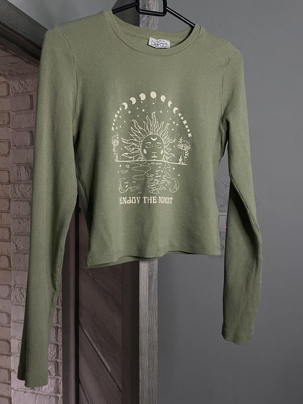 Оливковий лонгслів укорочений. Розмір L (більш схожий на М)