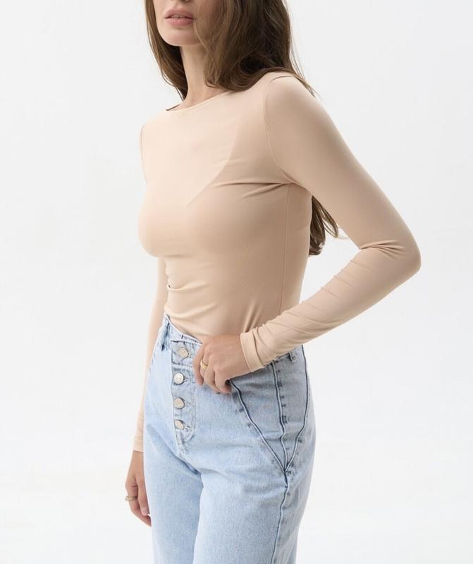 Бежевий лонгслів, тканина щільна, глянцева