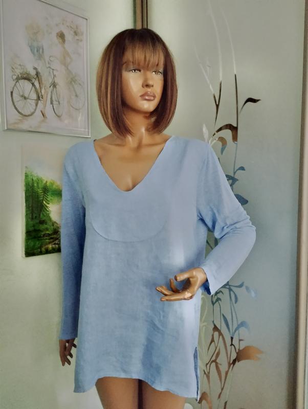 💯 лен,комбинированный, лен ткань и трикотаж.Пог 55,пот 54, поб 56, длин рук 57, плечи 46, длин 71/76.