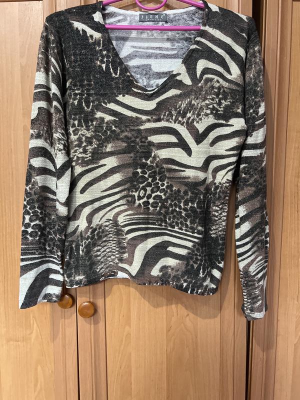 Добре тягнеться Довжина 59 см Плечі 45 см Рукав 58 см Ширина рукава до ліктя 15 см Ширина рукава на запʼясті 10 см По грудях 46 см Низ 42 см