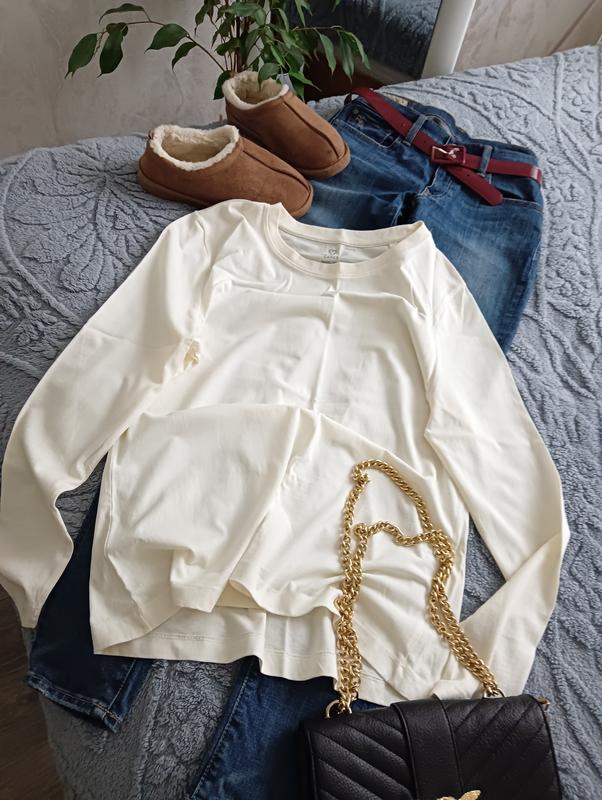 шикарная кофточка лонгслив молочный оттенок🤍 Стильный, запоминающийся базовый лонг. Диффектов нюансов нет 🔥 Состояние новый... без бумажной бирки Длина 65 Пог 50 -53 Плечи 41-42 Рукав 63-64