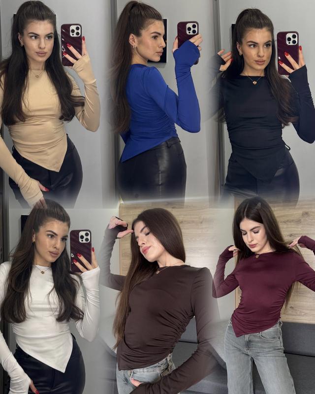 Стильний асиметричний лонгслів, який додасть шарму вашим образам. Підійде до будь-якого образу. На рукавах є вирізи для пальчиків. Модель: 3098 rusl Розміри : 42-44, 46-48 Тканина - Турецький мікро дайвінг Люкс якість 🔥 Кольори: чорний, електрик, беж, білий,шоколад ,бордо Заміри 💛Обхват грудей (42-44)-76см (46-48)-82см 💛Обхват талії (42-44)-56см (46-48)-62см 💛Довжина 41-60см 💛Рукав (42-44)-70см,(46-48)-71см 🛒 ВІДПРАВКА протягом 1-4 днів‼️ ‼️БЕЗПЕЧНОЮ ОПЛАТОЮ НЕ ВІДПРАВЛЯЄМО