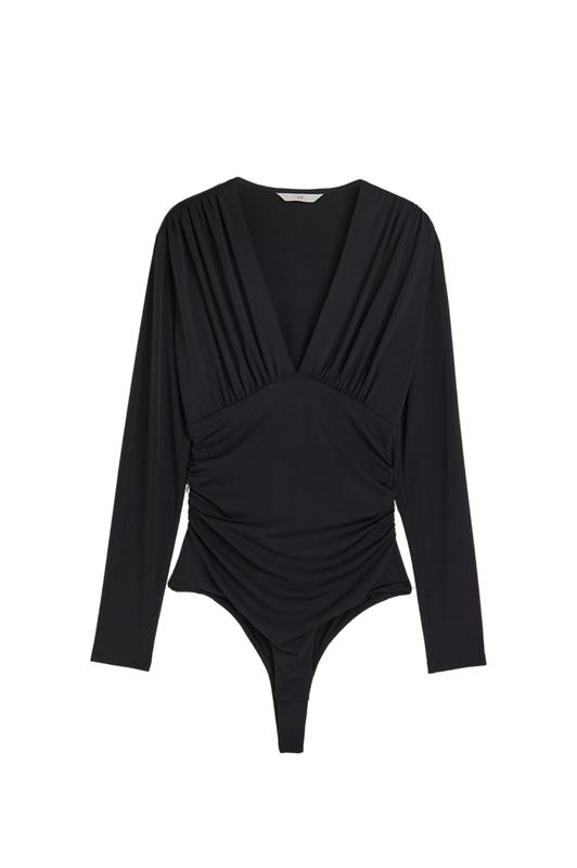 Боди с вырезом черного цвета, новый с биркой. Размер S. Можно надевать на выход, выглядит празднично.