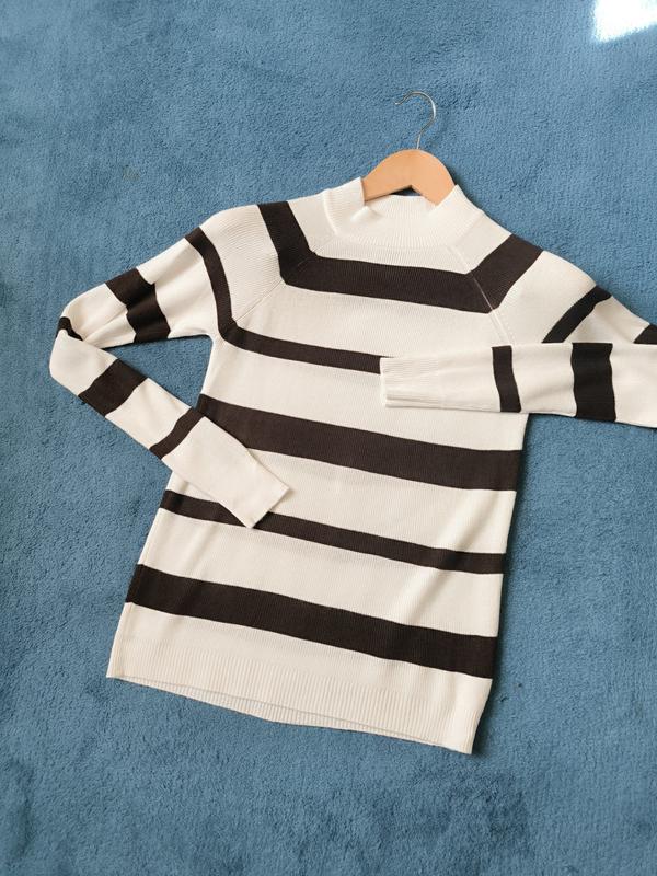Лонгслив в полоску, белая и шоколадная, длинный рукав, состояние идеальный, тянется Груди 100 Бедра100 Длина спинки 62 Длина рукава от горловины 70