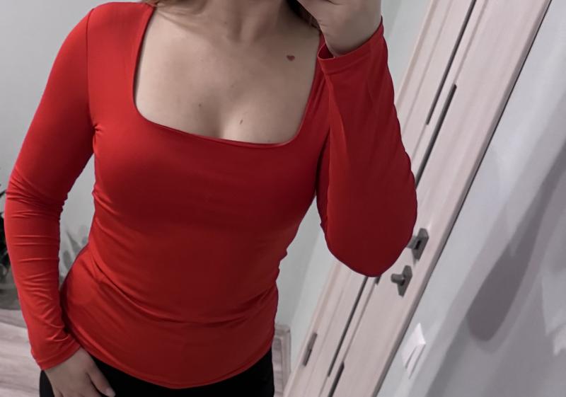 Лонгслів жіночий в ідеальному стані. Яскравий червоний колір. Розмір М-L. Дуже приємна мʼяка тканина.