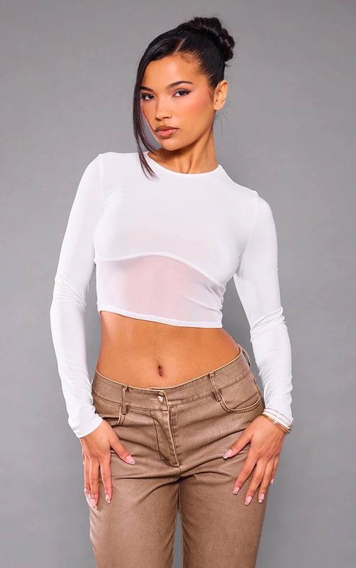 ТОРГУ НЕМАЄ 🤍 кроп топ з сіточкою PLT тканина масло Розмір М(12UK), дов: 42, груди 85+