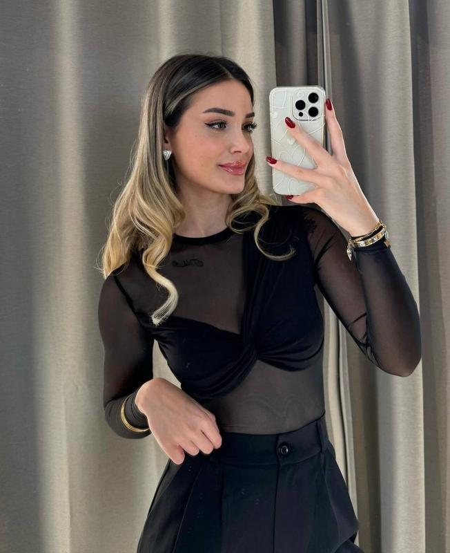 New🩶 2MOOD Лонгслів 🔘Мод 1036 🔘Розміри - 42-44, 44-46 🔘Кольори - чорний 🔘Тканина - сітка + віскоза Кофтина з модним акцентом драпіруванням. Стильний та жіночний, під будь-який образ.