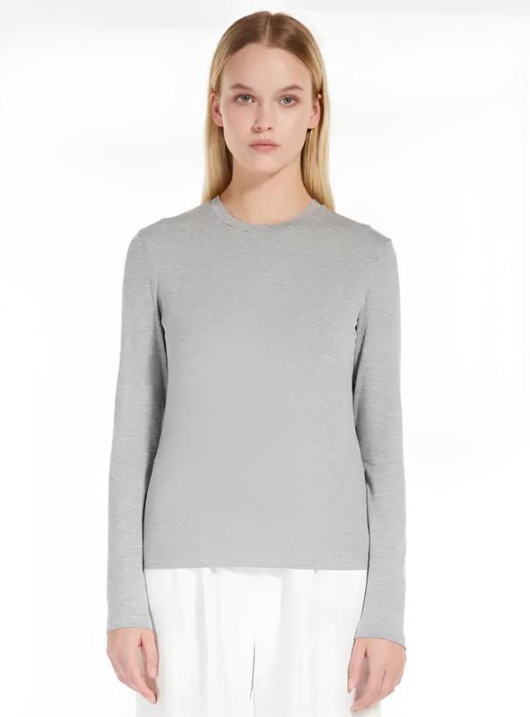 Лонг с круглой горловиной бренда MaxMara leisure выполнен из висузы с бодавкой 6% эластана., поэтому красиво тянется. Цвет серый меланжевый. Стан идеален. Размер указанный L Плечи 40 Пог 48 Длина 60 Длина рукава 62 На сайте стоит более 5 тысяч грн