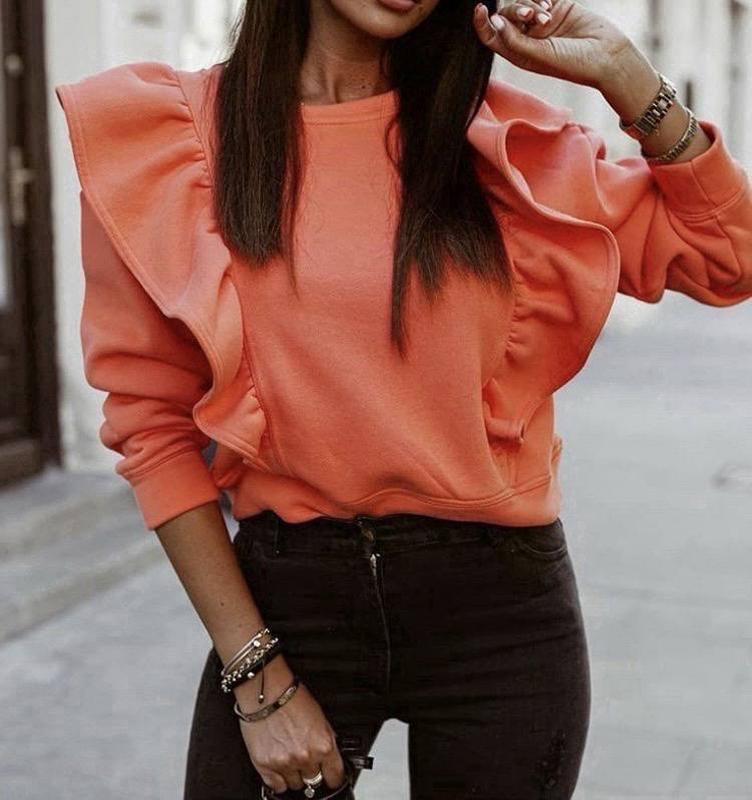 Кофточка №464 розмір Оранж42-44,46-48 тканина-тринитка Гарний, теплий світшот із рюшами.