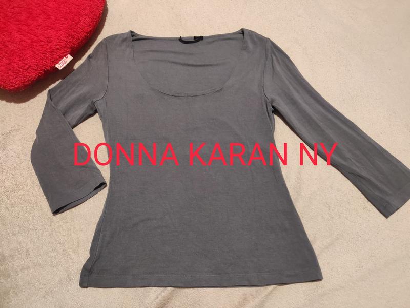 Donna Karan лонгслив цвет серый материал вискоза с легким отблеском - приятный на ощупь, качественный двойной топ на груди, подчеркивает фигуру рукав 7/8 на размер М: замеры в покое, очень эластичная, тянется 36 плечи 38 под руками 49 длина 42 рукав