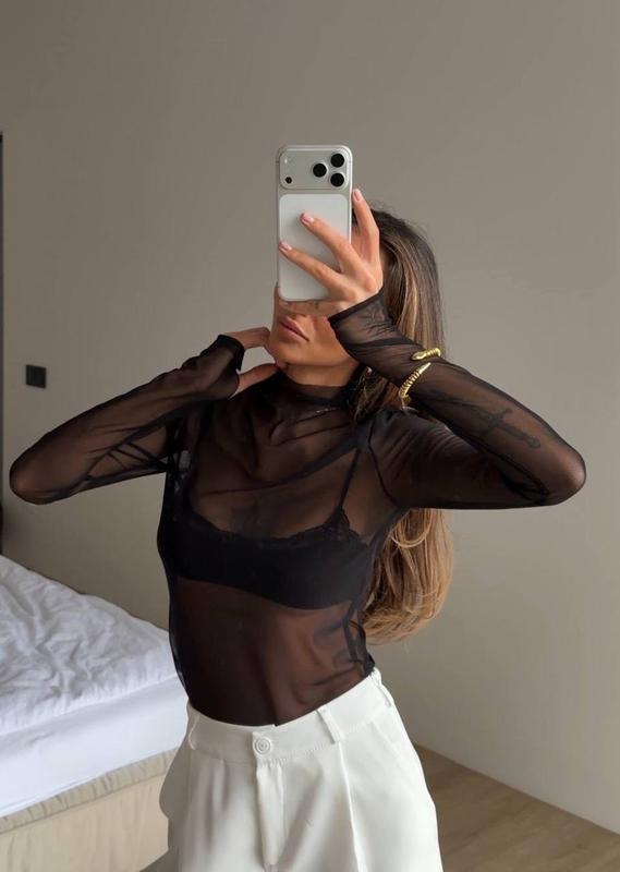 Лонгслів🥰 Мод: 4942-270 Розмір: 40-44 Тканина: сітка Колір: чорний Ціна- 519 грн🔥