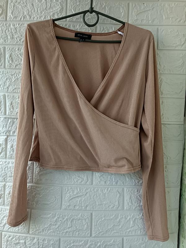 очень красивая женская кофточка укороченная, рубчик пудрового цвета, длина 46, полуобхват груди 45 плюс тянется до 60, плечи 36, рукав 60.