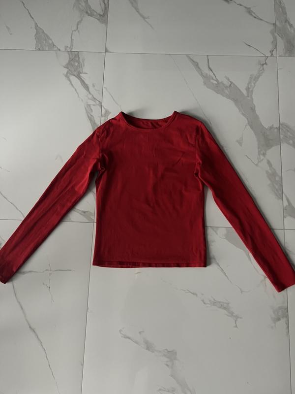 Лонгслів червоного кольору розмір - s на фото параметри дівчини - 167см, 83-62-90