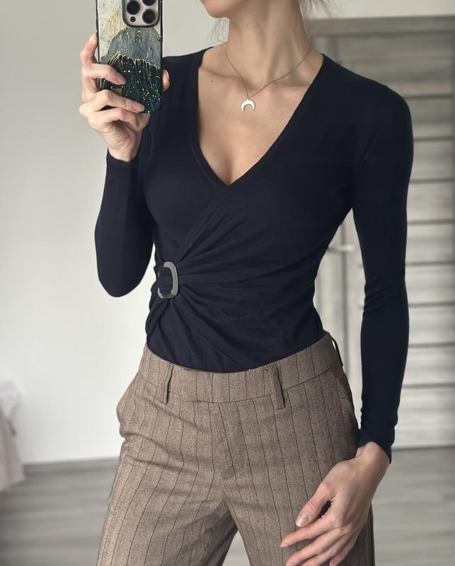 Розмір XXS-XS Темно-синій колір ( ближче до чорного) Склад - шерсть та шовк Тоненька , але тепла кофта Дуже мʼяка та приємна до тіла Облягаюча кофта жіноча з пряжкою Є нюанс-крайнє фото В іншому стан чудовий