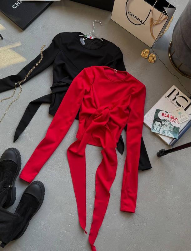 Лонгслів🥰 Мод: 824-1525 Тканина: щільний крепдайвінг Розмір: 42-46 Колір: чорний, молоко, червоний Ціна- 619 грн🔥 Є підплічники. На рукавчиках вирізи для пальчика✨ ОГ 87-96 см