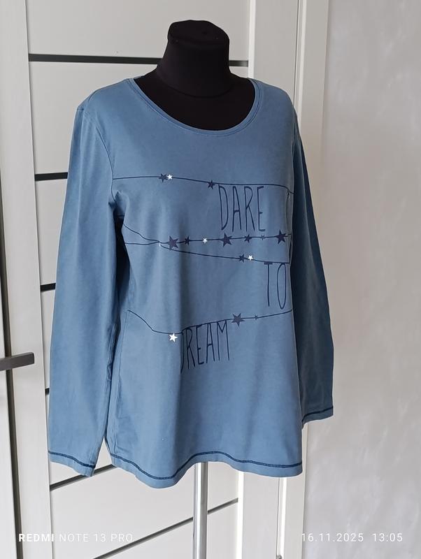 В идеальном состоянии,женский лонгслив,состав ткани 100% хлопок размер М полуобхват груди 52 см длина рукава от плечевого шва 60 см длина по спинке 61 см
