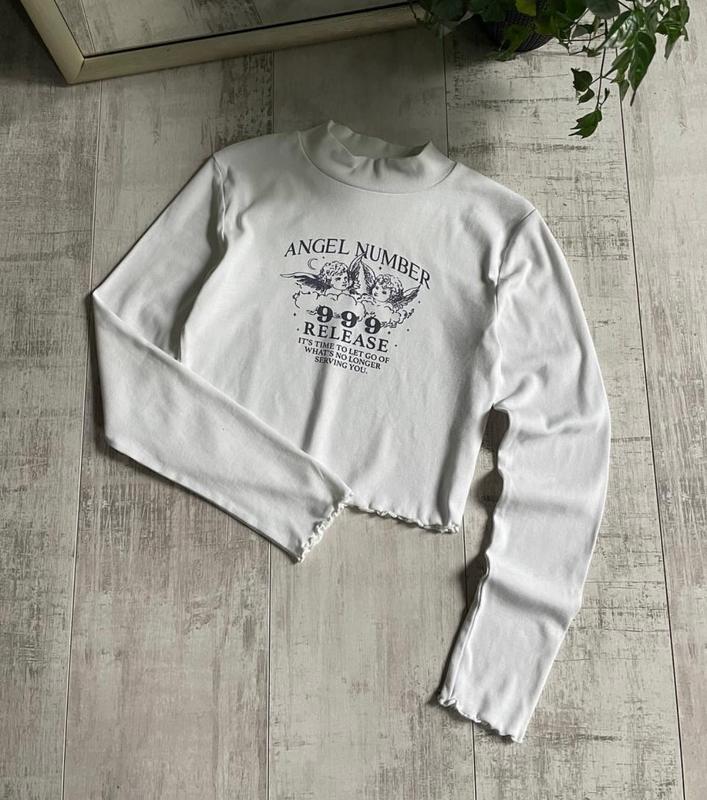 👼 Лонгслів з горлом + принт “ангели” та число 999 — вайбова річ для тих, хто любить глибокий сенс і нестандартний стиль 🖤 Стан — ідеальний, виглядає як новенький! 📏 Заміри: ▪️ Довжина — 37 см ▪️ Талія — 35 см ▪️ Рукав — 54 см