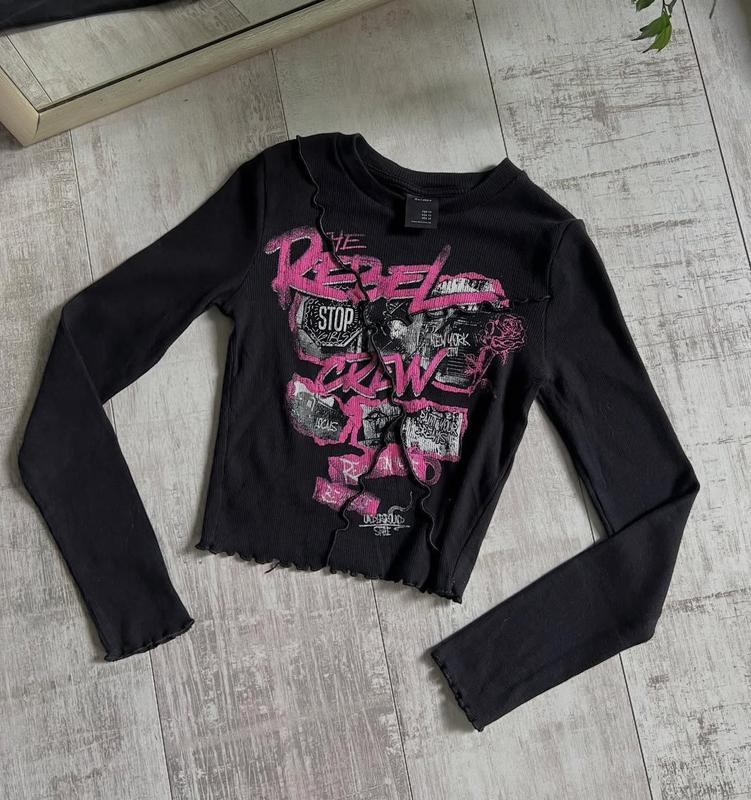 🔥 Лонг “Печ Ворк” з надписами 🔥 Розмір: XS 👕 Стан: ідеальний, як новий! ✨ Унікальний стиль завдяки яскравим надписам — для тих, хто любить виражати себе через одяг ✍️ 📏 Заміри: • Довжина: 36 см • Шини на: 27 см • Рукав: 59 см