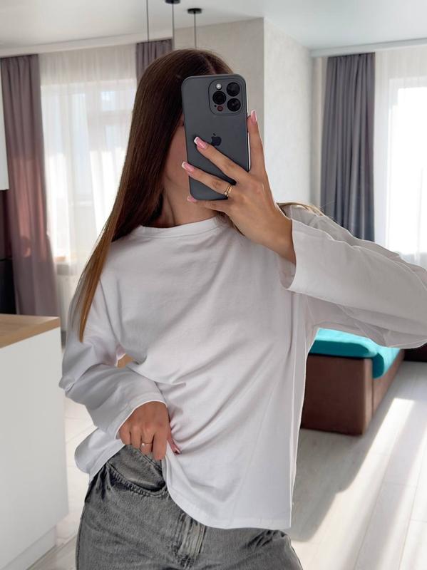 Отримали у кількості 🔥 Лонгслів 💔 🏷Ціна: 560грн ▪️Мод: 739 ▪️Розмір: 42-46(oversize) ▪️Тканина: турецький кулір ▪️Колір: чорний, білий Базовий лонгслів вільного крою з якісної та легкої тканини💕 📌Заміри 42-46: Довжина по спинці - 70 см Ширина - 55 см Рукав від горловини - 72 см Від шва - 57 см Код2205(соу)