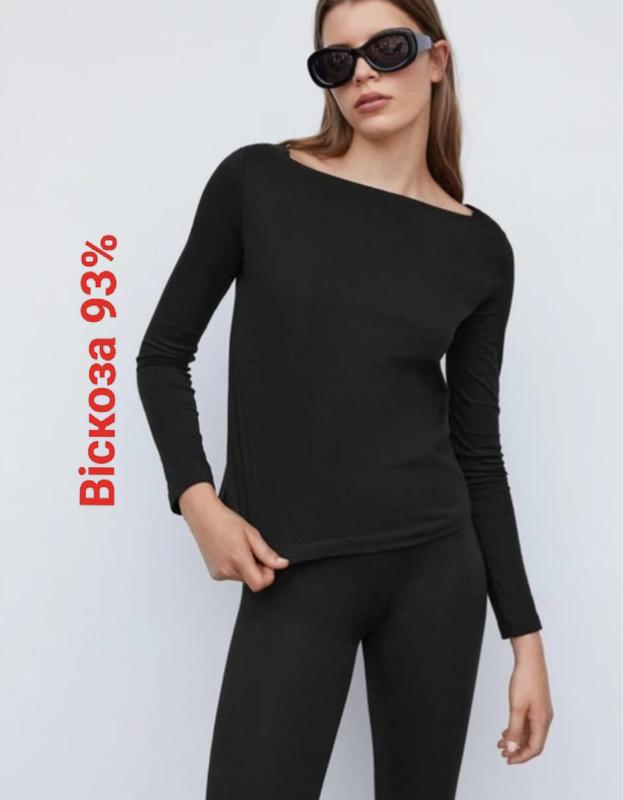 Черный женский базовый натуральный лонгслив джемпер, квадратный вырез, рукав 3/4