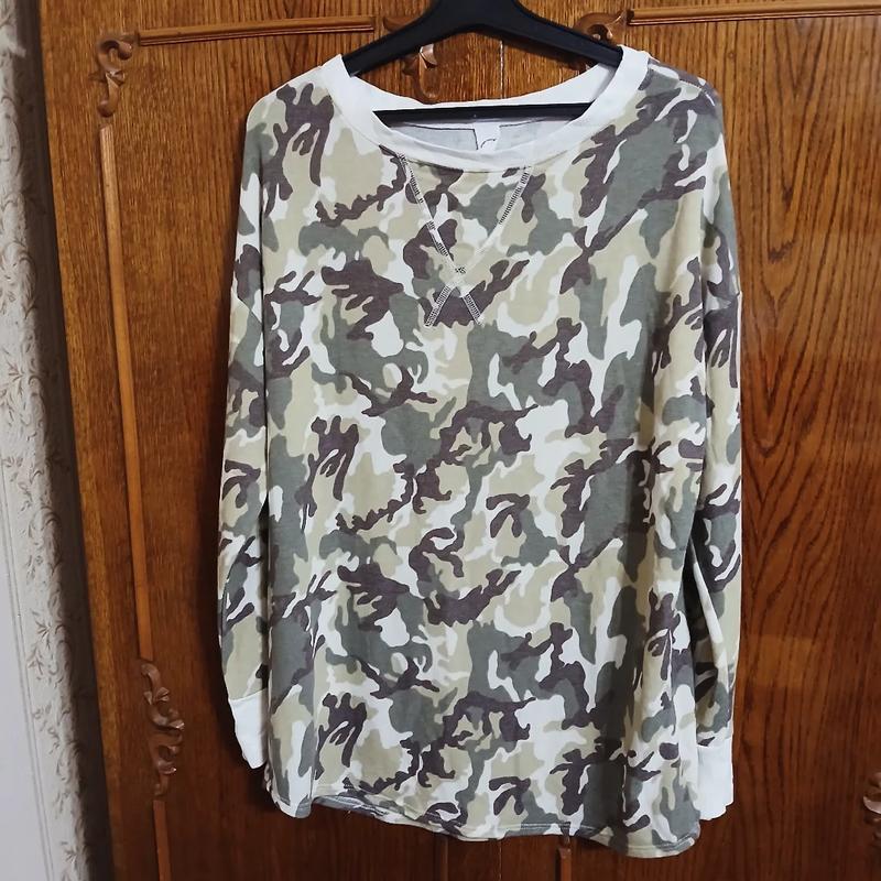 Лонгслив брендовая модель в анималистическом принте по составу район, спандэкс, полиэстр трикотаж на основе крученная нить,цвет хаки,мягкий приятный к телу. Дл.75 Пл.63 Р 47 плечи приспущены Р 67 от горловины Б по 20 Ог 120-130 Об 110-120 манжета.
