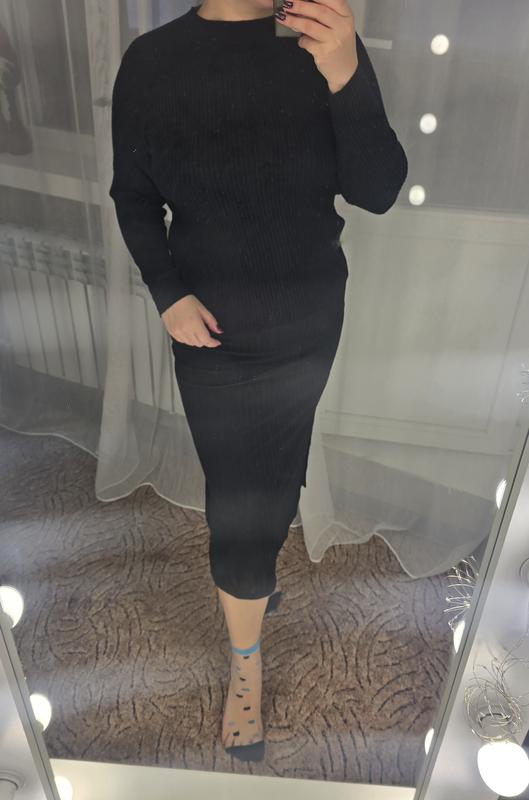 Лонгслив черный, рубчик. Вязкая мелкая. Без дефектов. Ткань очень хорошо тянется. Бирка срезана, поэтому состав неколеб, смотрите фото. Одет на ОГ 110, ОТ 83, рост 170. Замеры изделия: -длина 61 -рукав длина 54 -рукав ширина (бицепс) 36 -плечи 35 -ОГ 94 -ОТ 82 -низ 90