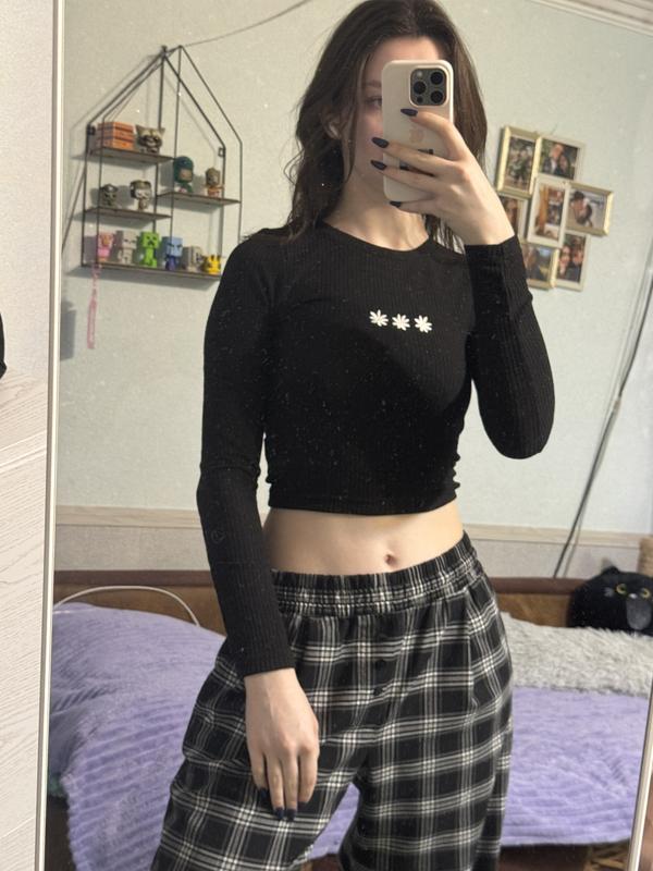 Лонг вкорочений в рубчик з вишивкою Розмір по бірці xs Фото на параметрах: Обхват талії:61 см Обхват грудей: 83 см Зріст: 170 см