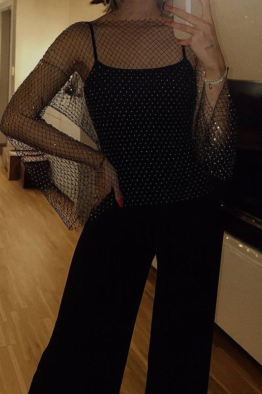 Образ, красиво подчеркивающий твою особую ночь✨ Мод.641 Ткань: качественная сетка со стразами,трикотаж Размер:42-46 Цвет: черный Описание: Сетка с дорогими стразами, которые не осыпаются даже после активных вечеров, — именно то, что делает этот лонг особенным. Под ней трикотажная маечка из натуральной ткани, с регулируемыми брительницами и качественной фурнитурой, идеально регулирующей длину. Это не просто вещь – это ваш самый красивый, самый выразительный лонг в каком-то взгляде сами находят вас. Легкое мерцание, чистые линии и особая подача делают образ таким, который невозможно забыть⭐️