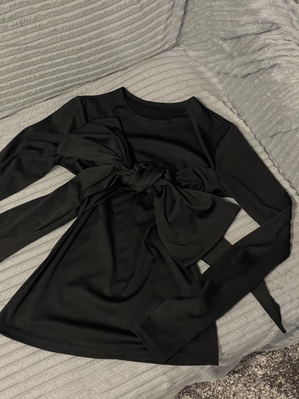 Кофтинка лонгслів з завʼязками, можна завʼязати як завгодно, ідеальний стан на розмір С, з розміром для пальчику, але на одному розмір більше розрізу а на іншому меньше (див. Фото), якщо потрібно запитуйте заміри