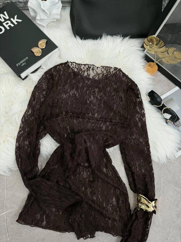 Лонгслів жіночий тканина: гіпюр / лонгслів чорний та шоколадний / лонг жіночий