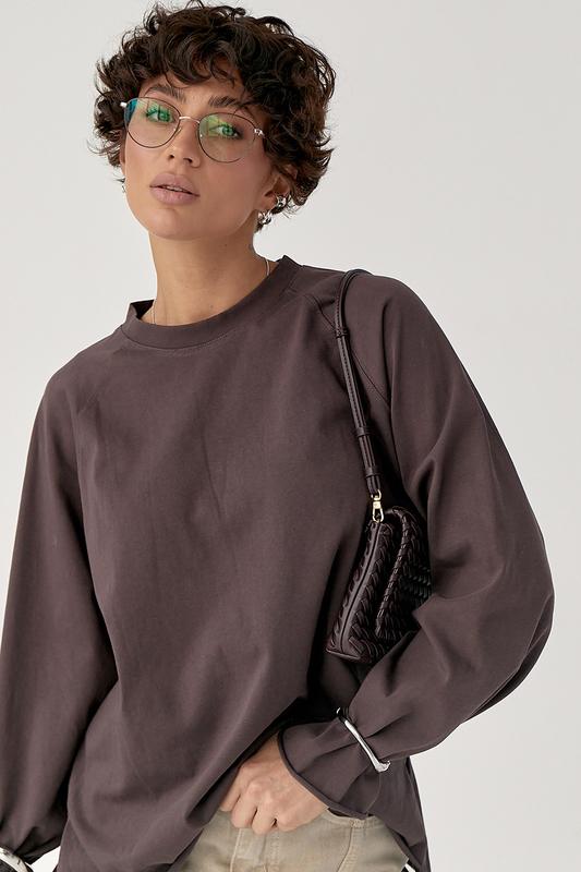 Однотонний вільний лонг шоколадна крфта джемпер коричнева кофта