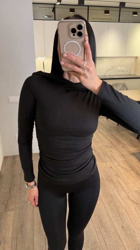 Термо кофточка женская лонгслив с капюшоном 42-46 черный