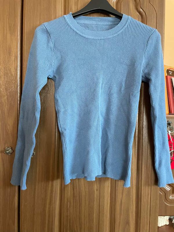 Кофта В рубчик Голуба 🩵 Гарно тягнеться Заміри 📏 Довжина 49 Рукав 48 Груди 33 Ціна 245 грн 💰