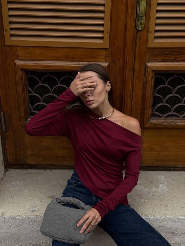 NEW ❤️🔥 Асиметричний лонгслів💥 Мод. 106 Розмір: 42-44; 46-48 Колір: шоколад, бордо, чорний Тканина: мікродайвінг 💭Стильний крій 💭М’який і зручний 💭Ідеально під будь-який образ❤️