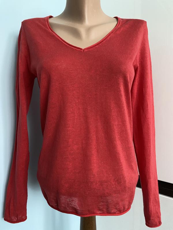 Гарненький лонгслів з ажурною спинкою. Brora - це шотландський бренд елітної трикотажної одежі. Склад тканини чудовий 55% льон, 45% бавовна.Заміри НОГ 45 см, НОТ 42 см, НОС 45 см, довжина 60 см. Колір червоний, але не яркий, приємний. Нова бавовняна футболка коштує 75 фунтів стерлінгів, це 4288 грн. Дивись останнє фото.