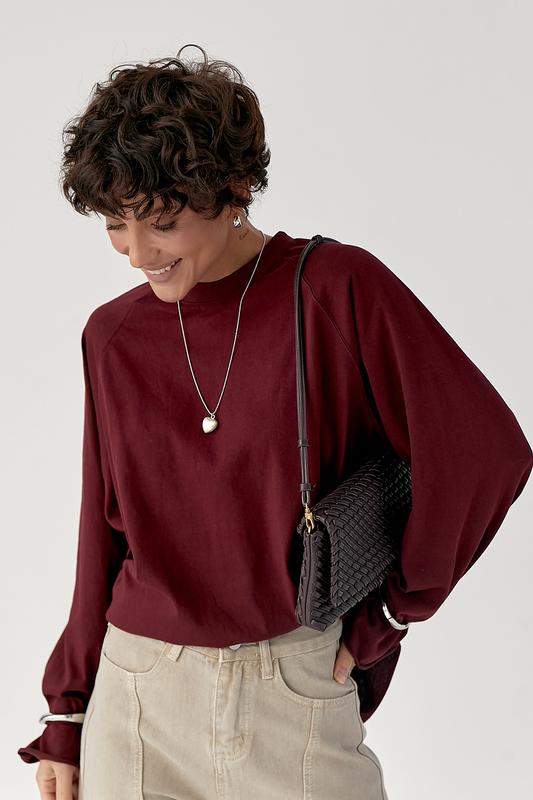 Однотонный свободный лонг – комфортная и современная модель в стиле casual, которая идеально подходит для повседневных образов. Изделие имеет круглую горловину и рукава реглан, создающие мягкую линию плеч и обеспечивающие свободу движений. Длинные широкие рукава подчеркивают расслабленный характер модели и добавляют актуальный объем силуэта. Лонг выполнен в свободном крое с удлиненной спинкой, что делает посадку более интересной и многослойной. По бокам предусмотрены разрезы, которые добавляют динамики и комфорта во время носки. Необработанные края по низу и рукавам создают легкий эффект небрежности и подчеркивают современный дизайн изделия. Модель легко сочетается с джинсами, лосинами или трикотажными брюками, а также отлично смотрится в многослойных образах с жилетами или куртками.