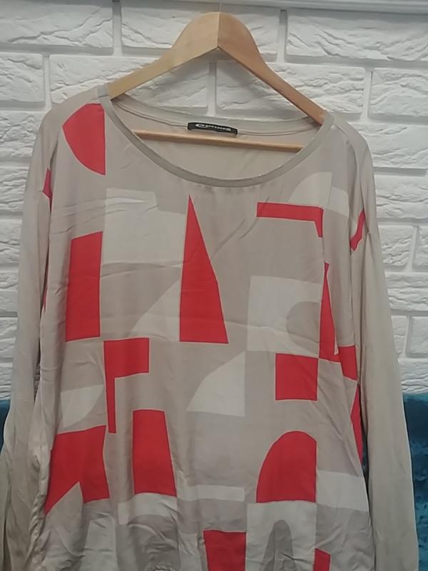 Классирующий лонгслив, блуза, теплого цвета с яркими геометрическими элементами🎀🎀🎀 плечи 60 ног 63 нот 58 нос 61 длина 70 рукав 61×21